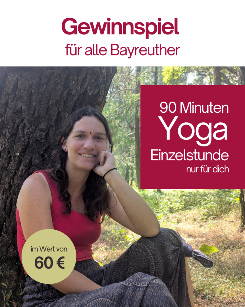 Meine Aktion geht weiter! Einmal im Monat gebe ich eine gratis Yogastunde in Bayreuth. Weil ich zutiefst davon überzeugt bin, dass Yoga in jeder Lebenslage so bereichernd für jeden ist! Jetzt einfach Kontaktformular ausfüllen oder bei meinem Gewinnspiel in Instagram oder Facebook mitmachen.